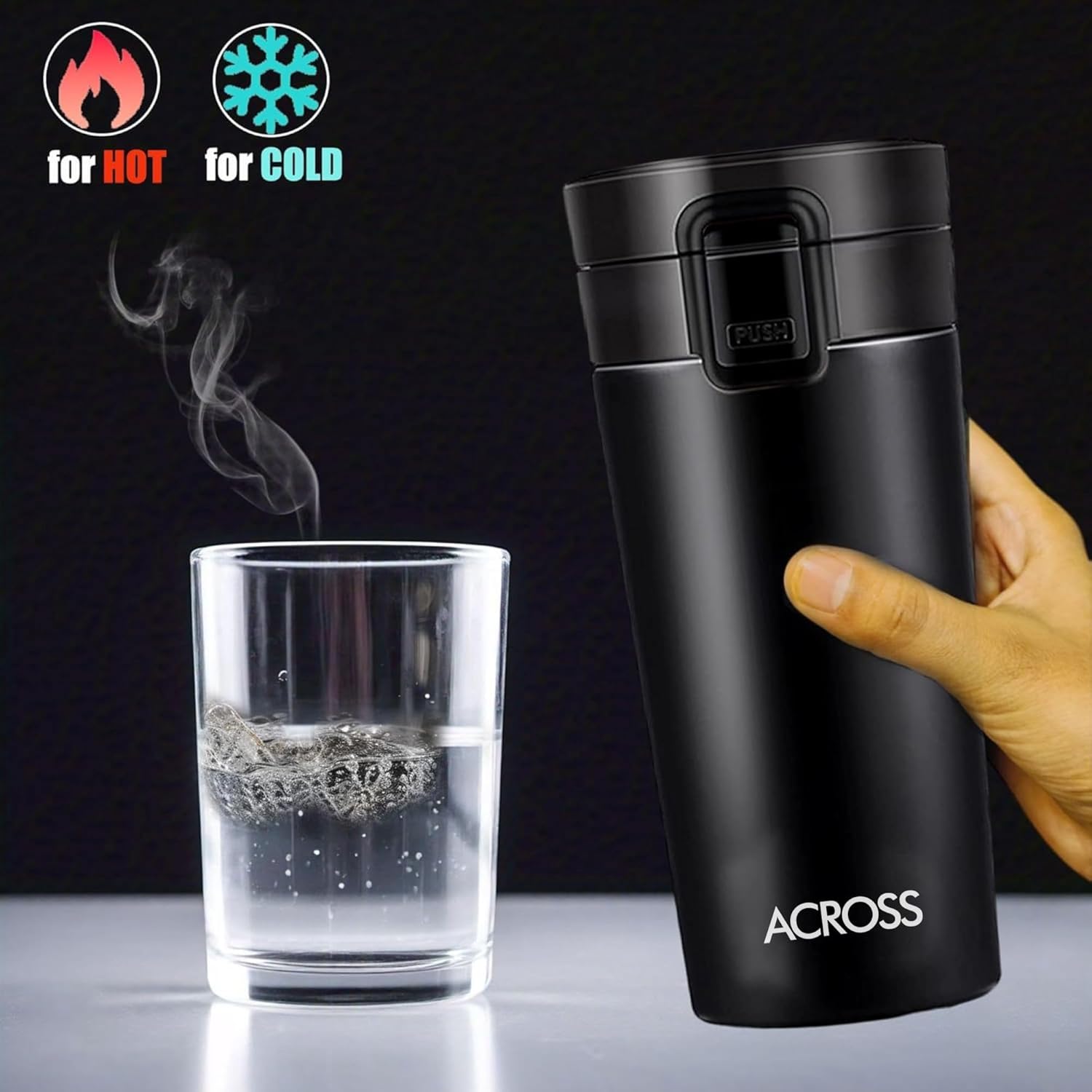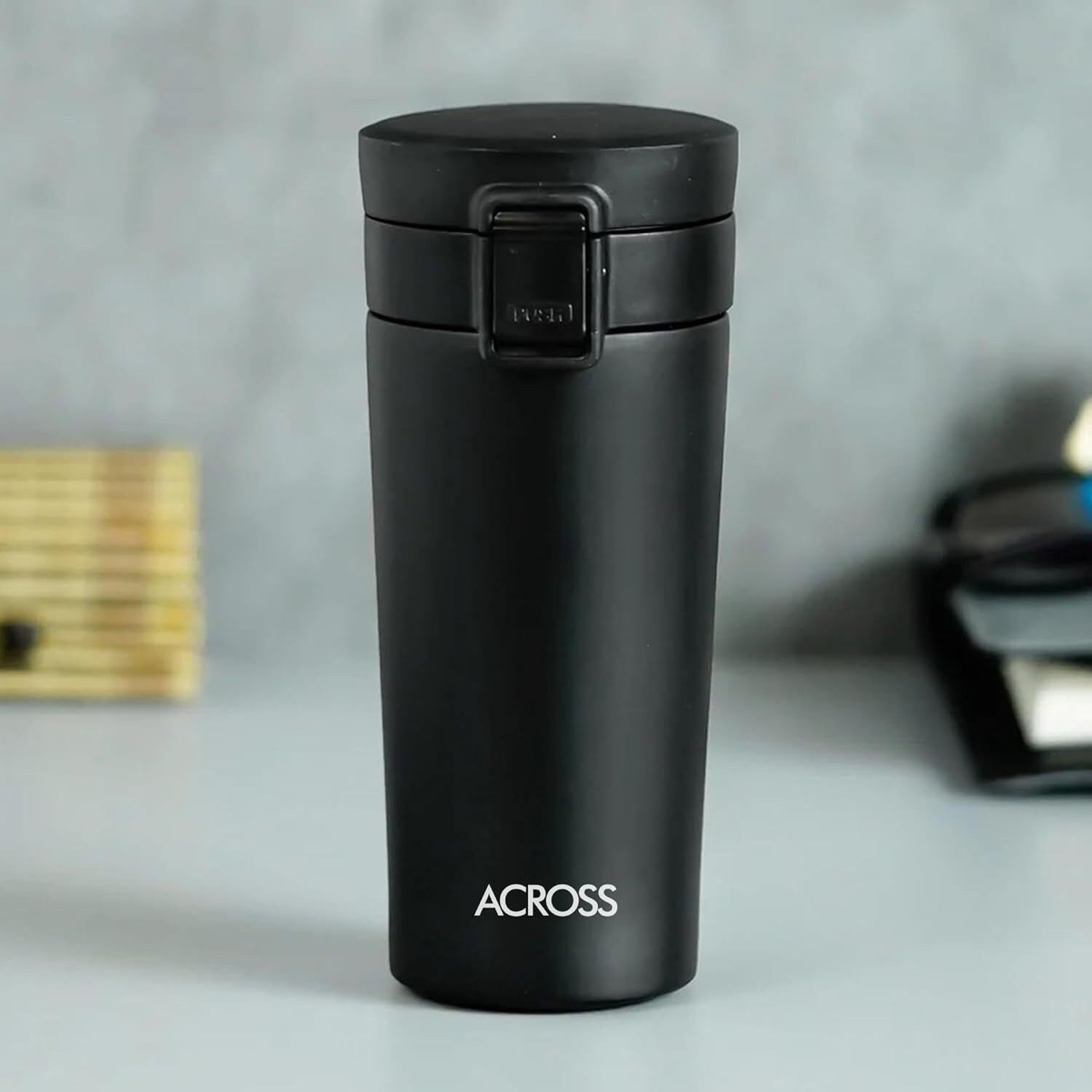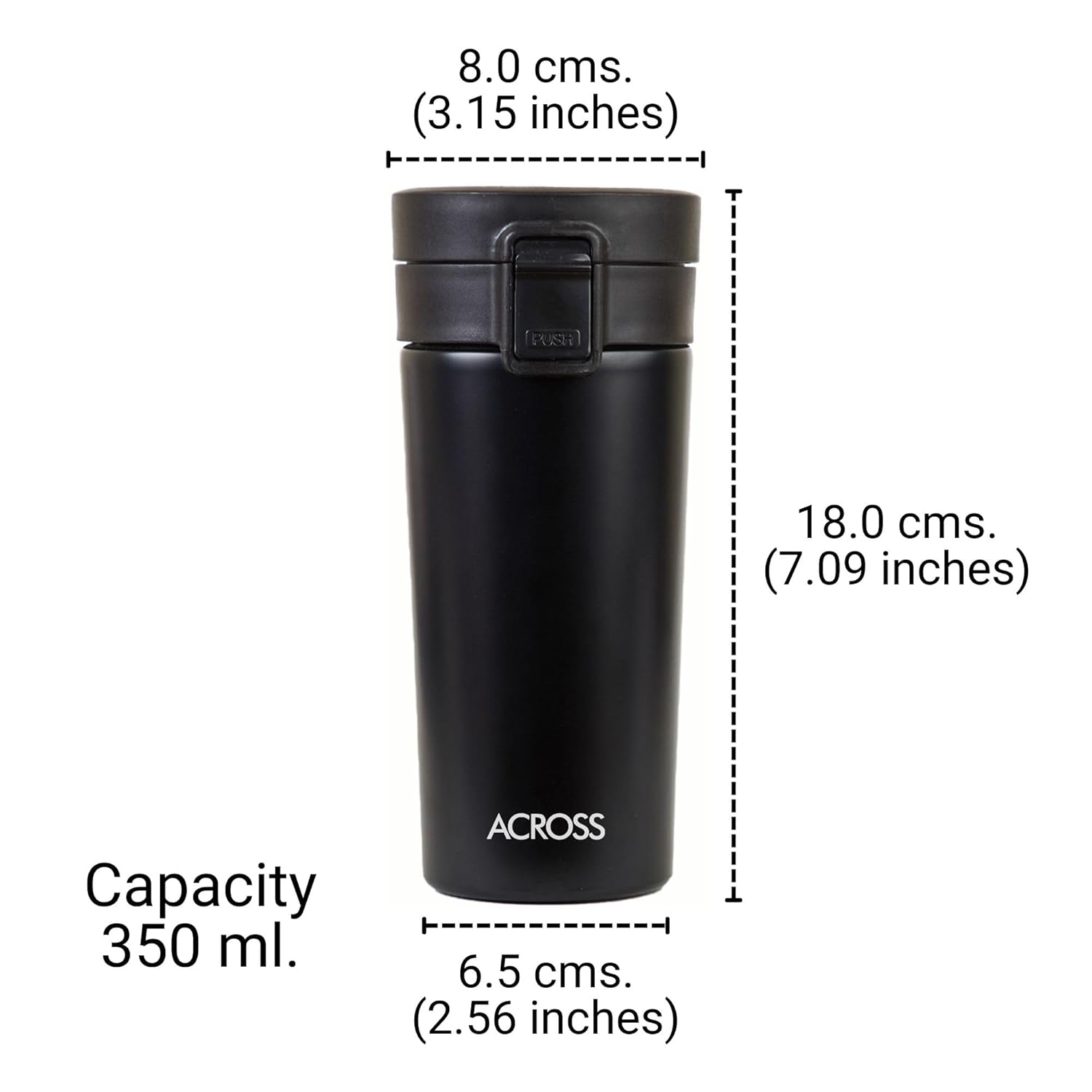 Across Coffee Flask 350 Double Wall Stainless Steel Hot and Cold Vacuum Insulated Travel Mug Flask Water Bottle, 350 ml, Matte Black