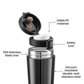 - SAFETY FEATURES: Equipped with a secure safety lock mechanism and anti-scalding cup mouth design for comfortable drinking experience. BPA free lid