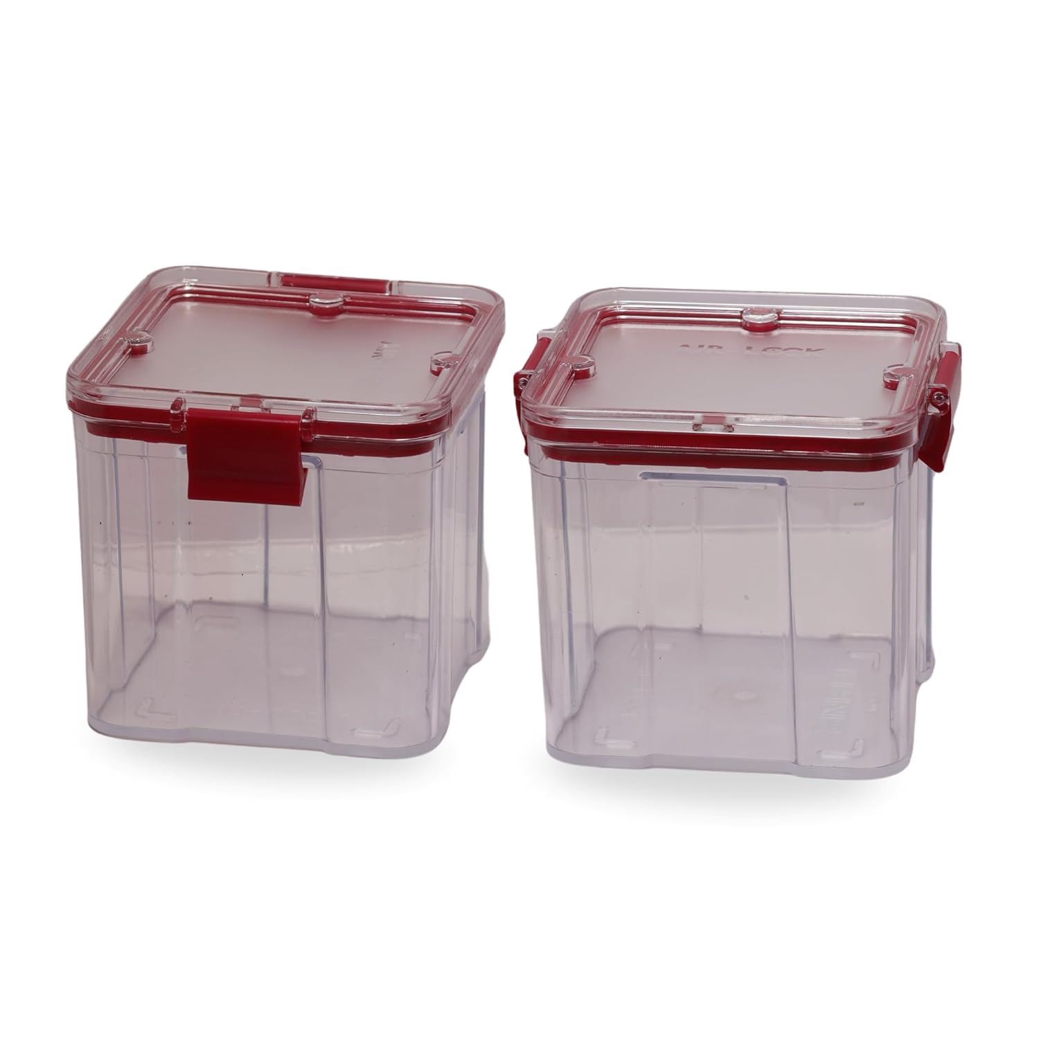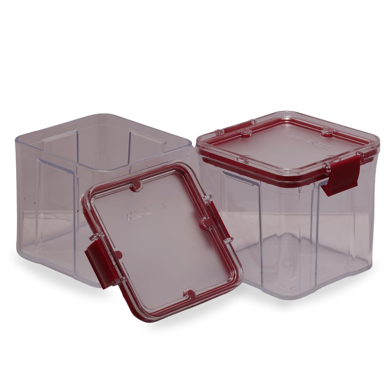 AirLock Airtight Food Storage Containers | Set of 2 | BPA-Free, Transparent Plastic Jars with Locking Lids | Durable, Leakproof & Space-Saving Kitchen Containers – Red (1.1 Ltr Each)