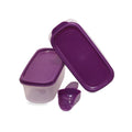 - Set of 2 500 ml containers with airtight purple lids, ideal for snacks, spices, grains, and dry kitchen items.