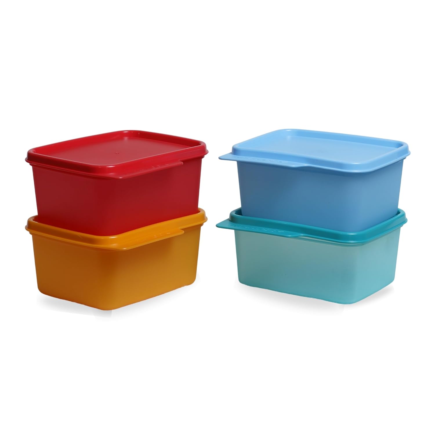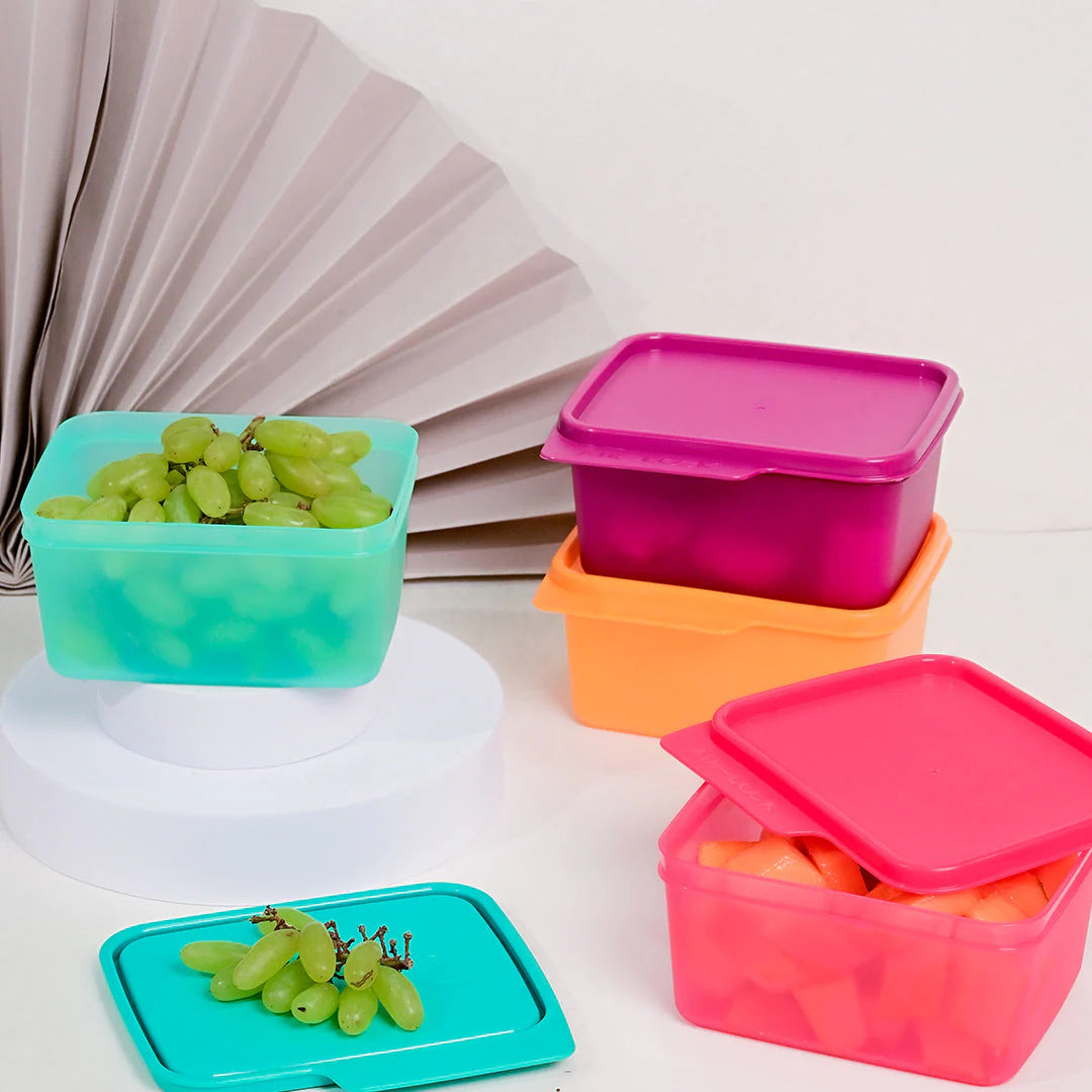 - Set of 4 multicolor 500 ml containers ideal for storing snacks, dry fruits, spices, leftovers, or fridge items.