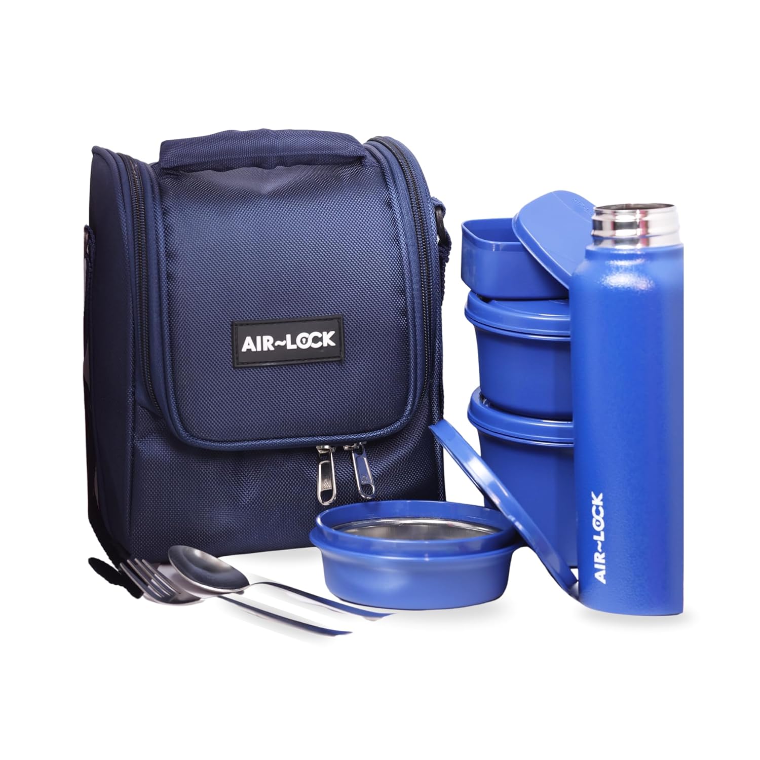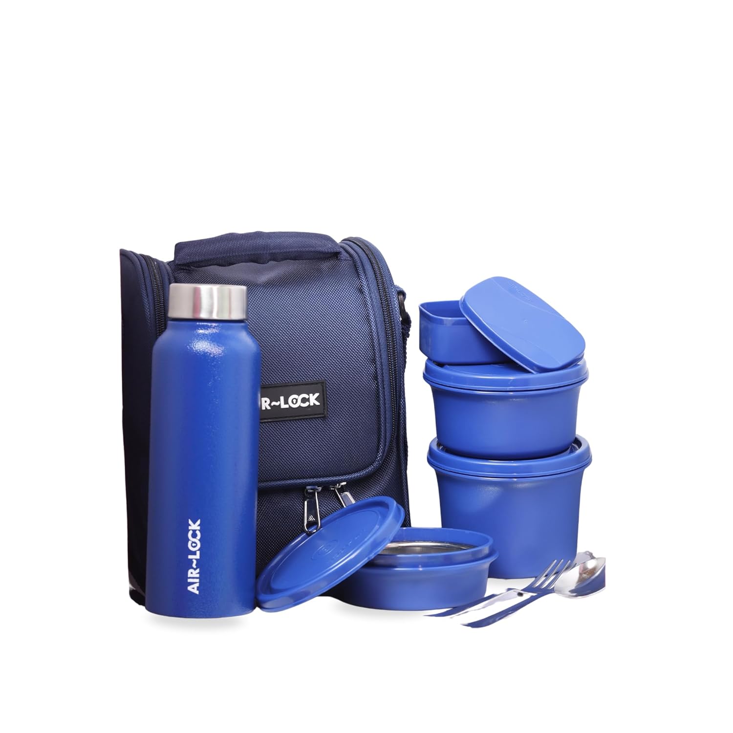 AirLock Meal Mate Tiffin Set – Leakproof, Microwave Safe Lunch Box with Bottle | Blue