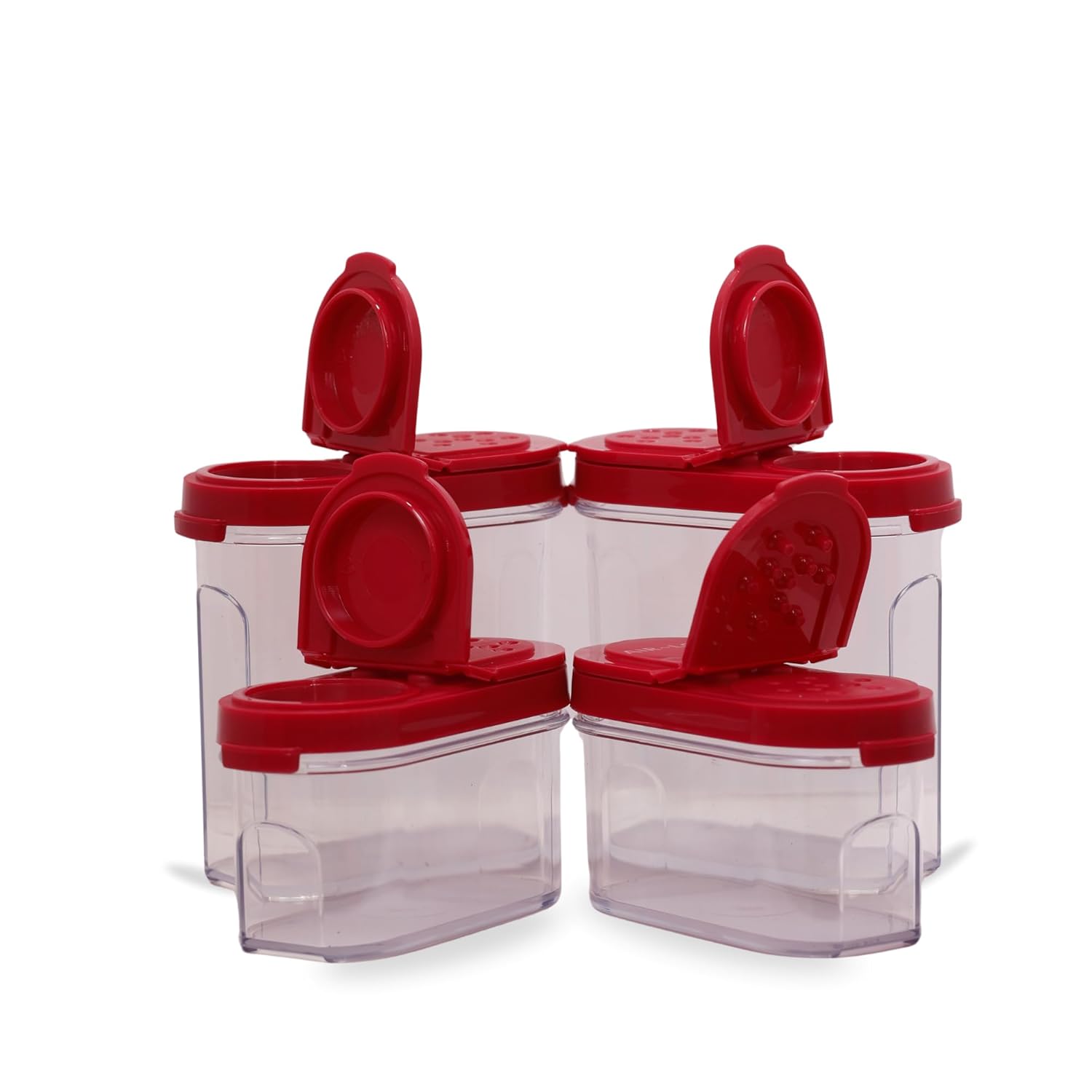 AirLock Modular Spice Shakers Set | Airtight Seasoning Containers for Kitchen Storage | BPA-Free Plastic Jars with Flip Lids | Set of 4