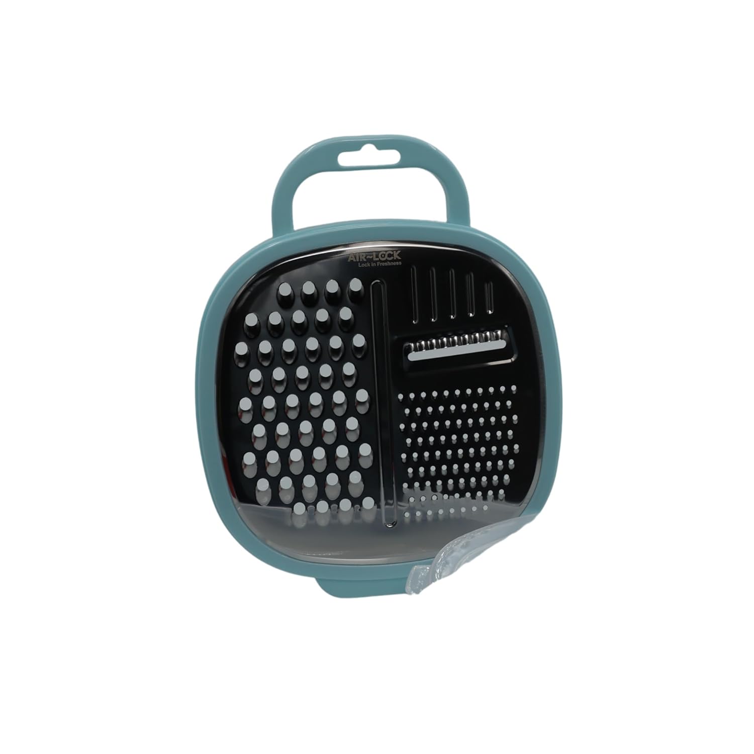 Upgrade your kitchen essentials with the AirLock Multi-Purpose Grater & Slicer. Designed with 4 stainless steel blade options, this grater lets you shred, slice, and grate vegetables, cheese, fruits, and more with ease. Its built-in container ensures mess-free grating and convenient storage, while the ergonomic handle provides a comfortable grip. Compact, durable, and easy to clean – the perfect tool for everyday cooking!