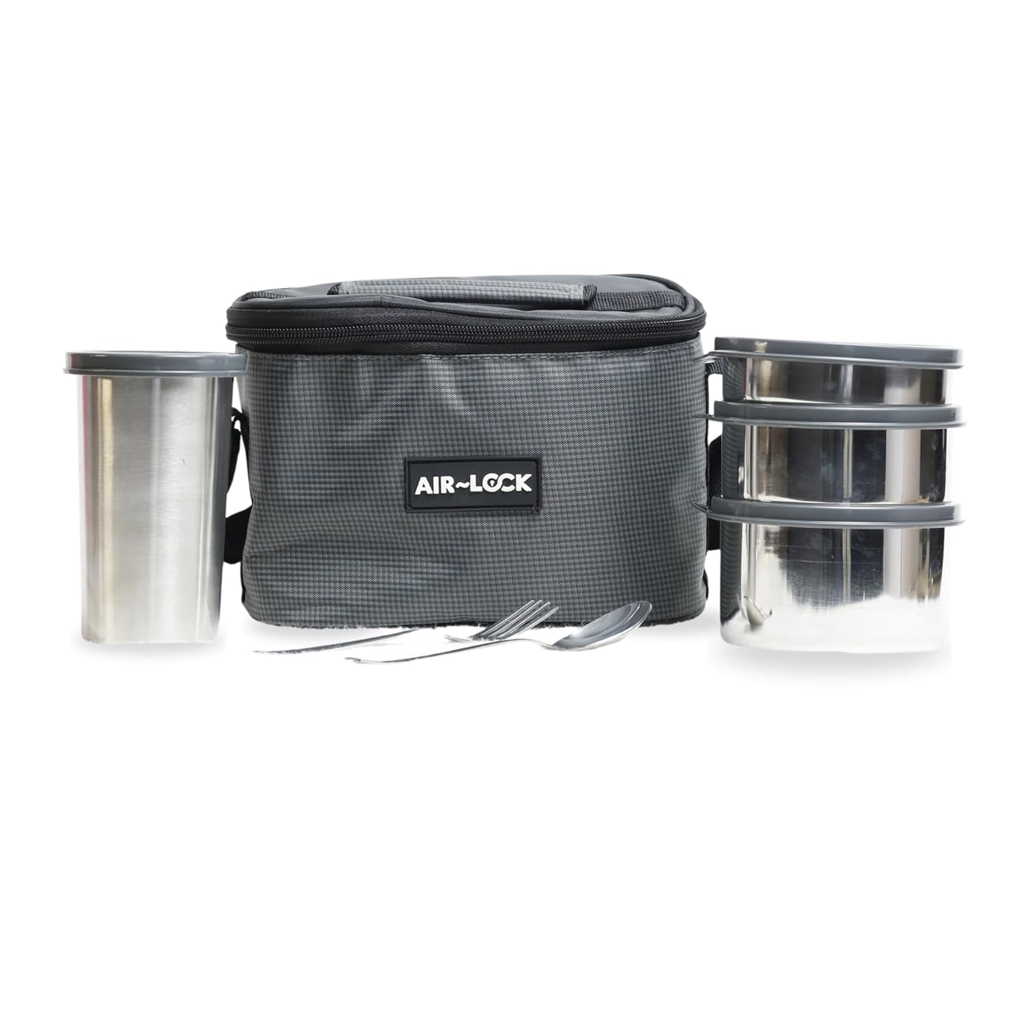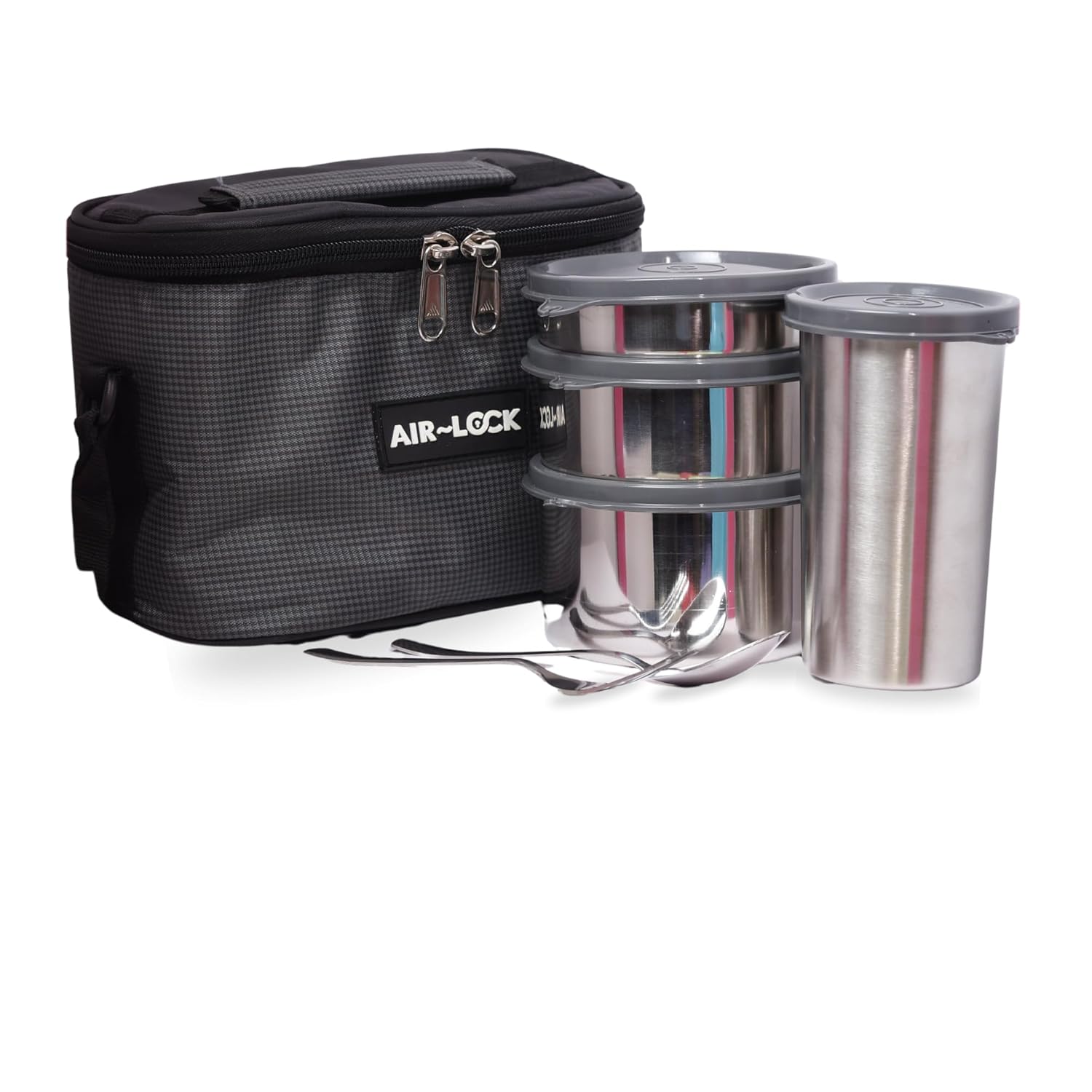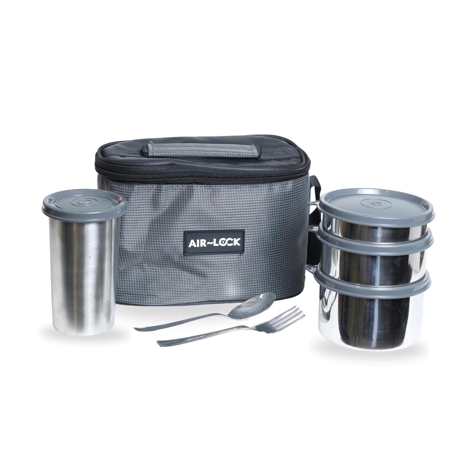 AirLock Munch Max Stainless Steel Lunch Set | Leakproof Tiffin Box with Bottle, Spoon & Fork, Tumbler | Durable Food Containers for Office, School, Travel | Compact, Easy to Carry & Clean