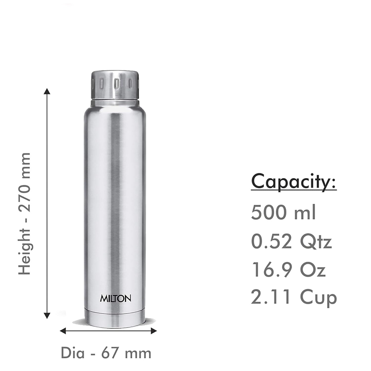 MILTON Thermosteel Elfin 500 Bottle, (Steel Plain, Silver), 500 Ml